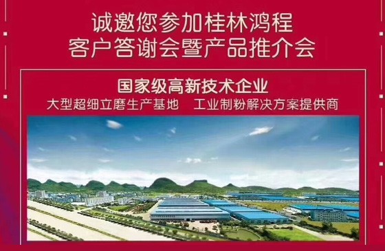 來源:桂林鴻程磨粉機(jī)廠家桂林鴻程公司2019年6月6日在河南南召縣舉行客戶答謝會(huì) 磨粉機(jī)廠家桂林鴻程公司計(jì)劃于6月6日在河南南召縣舉行客戶答謝會(huì)暨產(chǎn)品推介會(huì),誠(chéng)邀各界人士參...